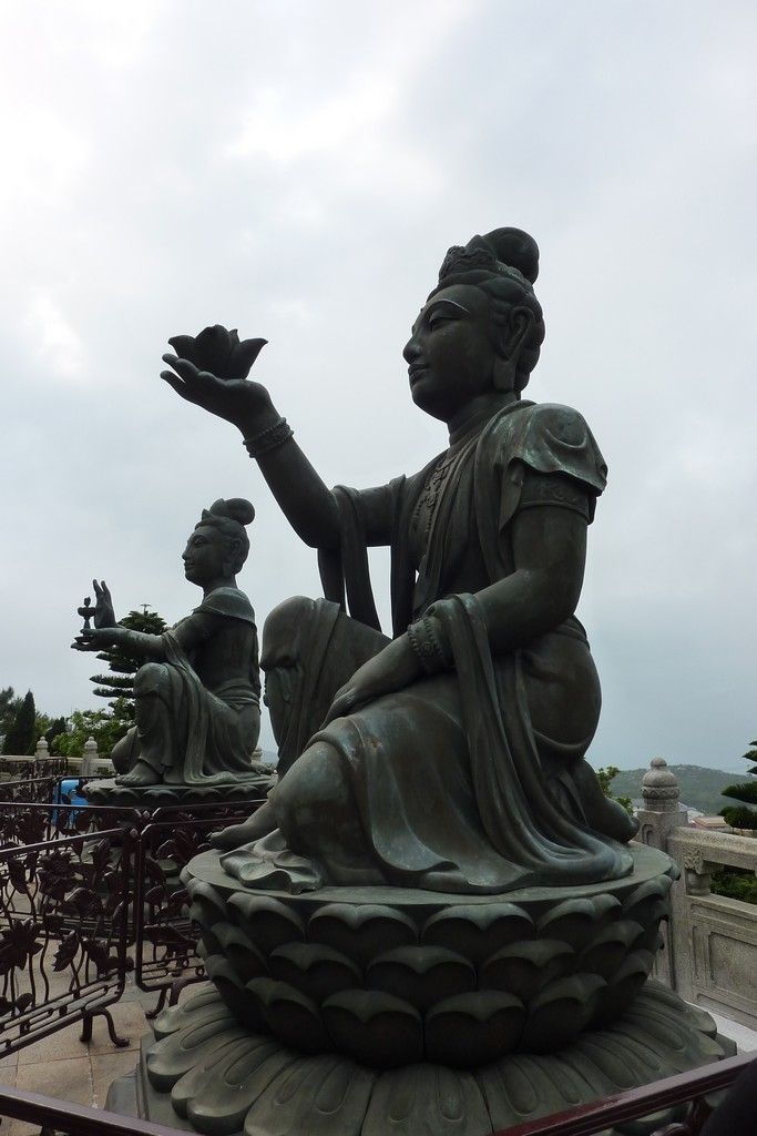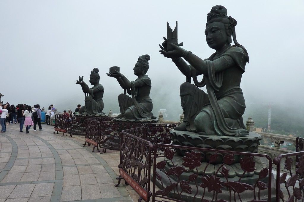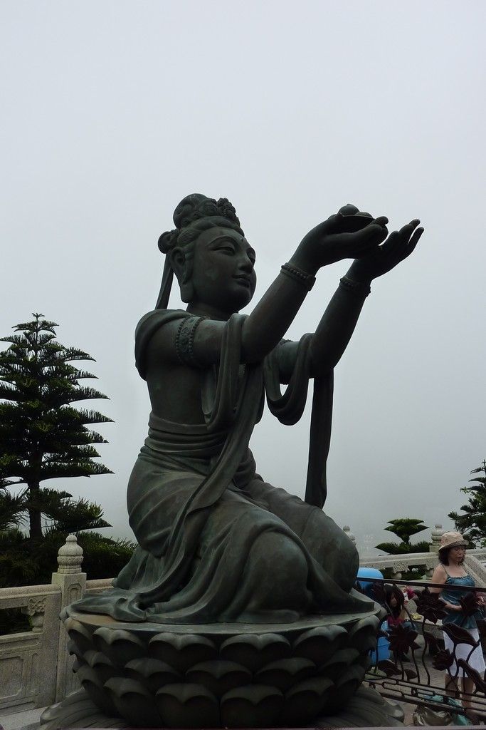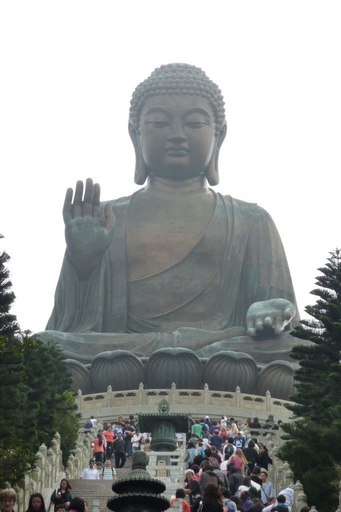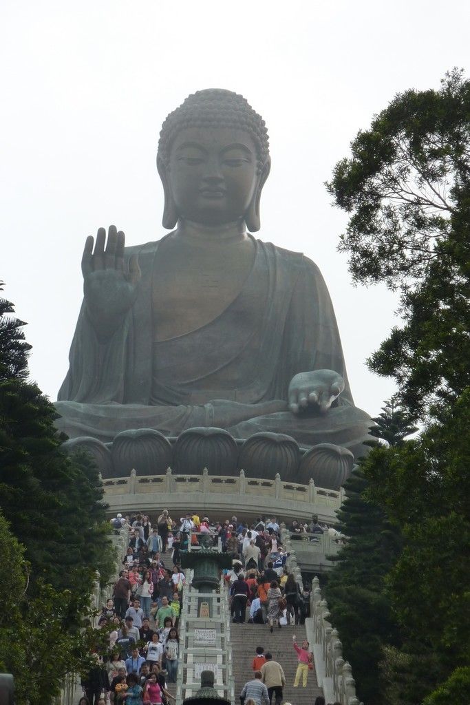 Nous nous rendrons sur la calme île de Lantau afin de rejoindre le plus grand bouddha en bronze du monde (36 Mètres de haut). Nous prenons le star ferry puis un bus où j’ai failli hurler contre un chauffeur qui me disait de mettre 44 au lieu de 54 Dollards! Il faut dire qu’il est complètement imbécile d’imposer la préparation du compte exact de somme comme 22,80 Dollars, même si je me suis rendu compte que l’imbécile c’était moi qui n’avait pas opté pour l’octopus (carte de paiement pour tout les transports de Hong Kong) pourtant intégralement remboursable lorsque l’on quitte le territoire! Parlons également des billets de banque ou le système financier est très particulier. Je ne saurais vous expliquer comment le système bancaire fonctionne mais les billets de banque n’en sont simplement pas, en tout cas pas comme ceux que nous connaissons! En effet, les billets sont des « bons » correspondant à la valeur faciale uniquement valable chez la banque émettrice. Ainsi vous trouverez des billets de 10 dollars tous différents les uns des autres issus d’autant de banques différentes implantées à Hong Kong! Le billet de 10 est d’ailleurs comme un collector car il est plastifié, ça surprend!