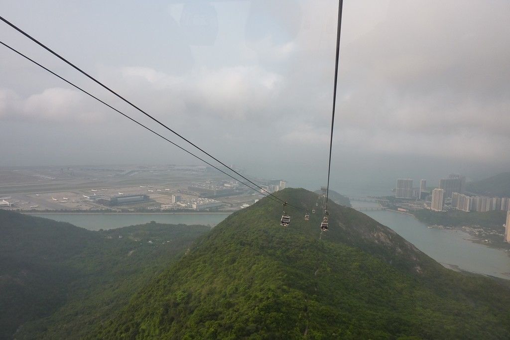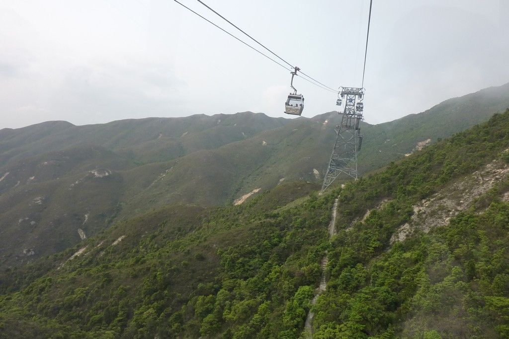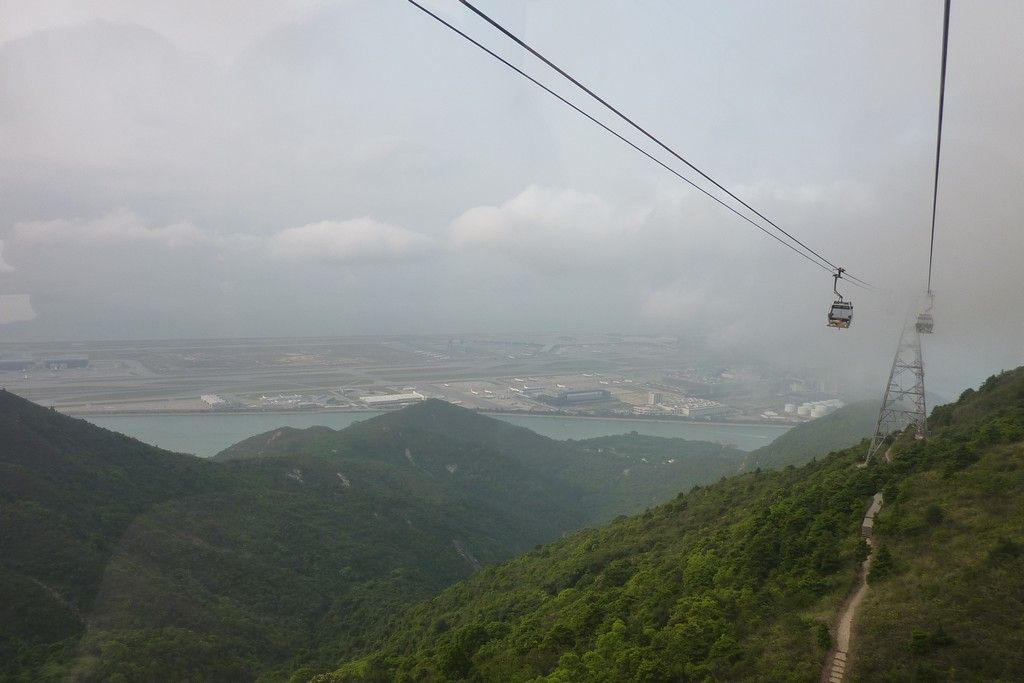 Le grand bouddha pour en revenir à lui est donc admirable (bien que très récent, datant des année 90) et jouit d’une situation exceptionnelle sur une île ayant échappé au développement immobilier frénétique (mis à part l’aéroport). En prenant le téléphérique qui nous redescendait, nous aurions beaucoup de fois souhaité descendre de la cabine pour profiter du coucher de soleil! Une cabine de téléphérique d’ailleurs « luxe » et donc plus chère car on voyait le paysage sous nos pieds à travers une vitre de plexiglas. Entre nous, on s’en fichait un peu, on a payé plus cher simplement pour éviter les 2 heures de queues pour la cabine des pauvres!